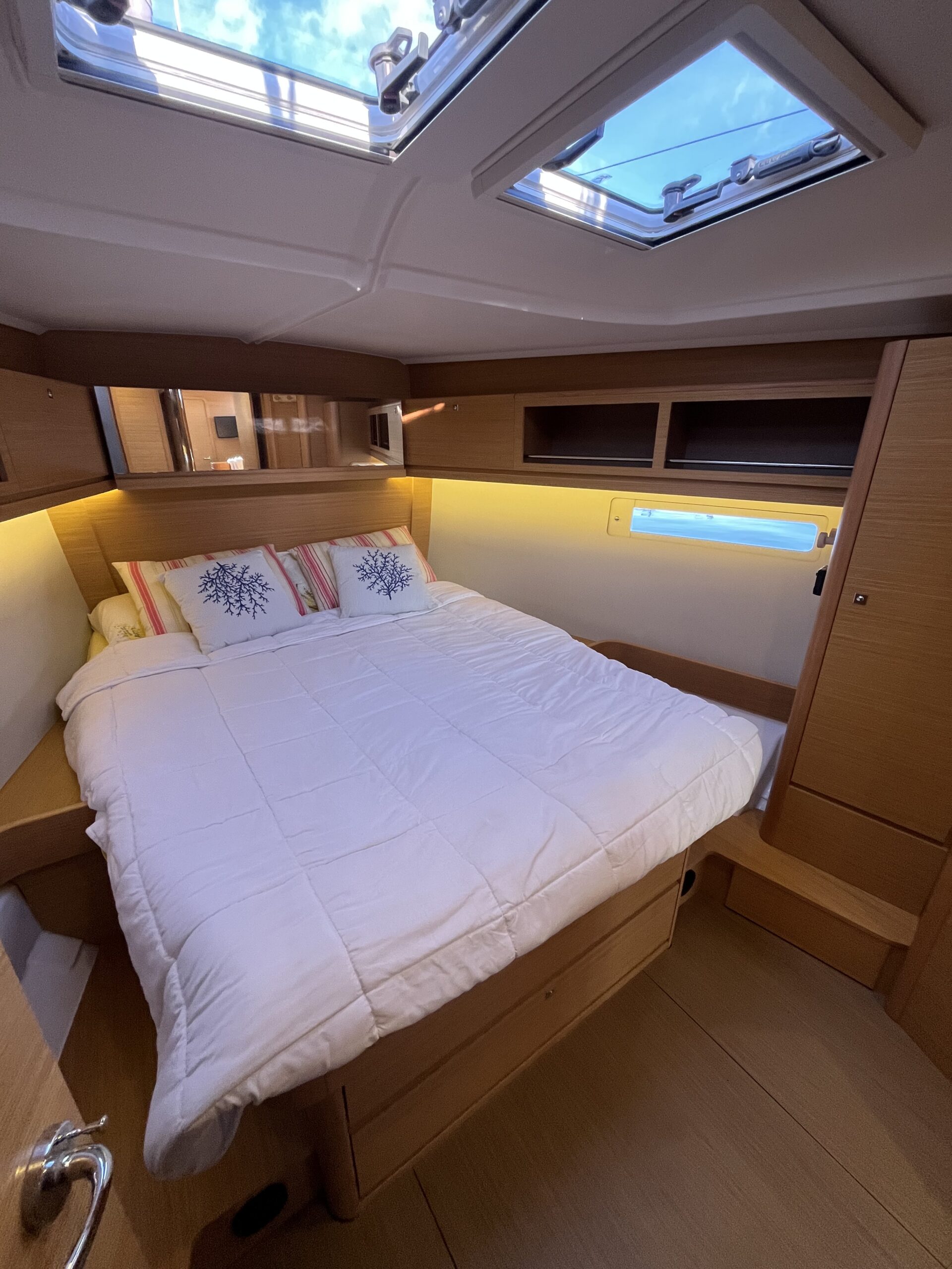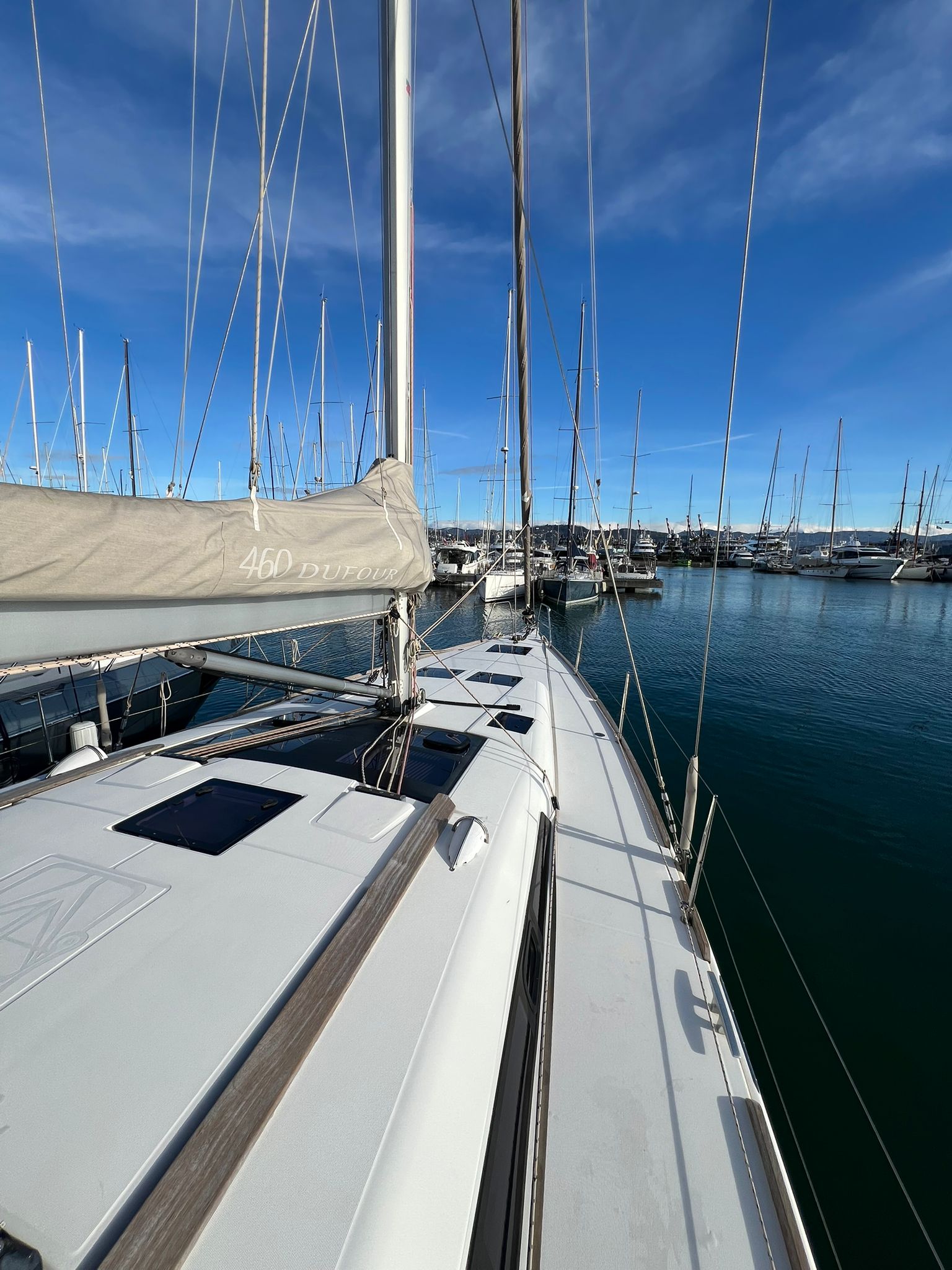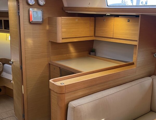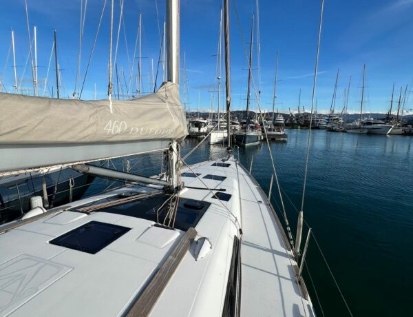 Il Dufour 460 Grand Large incarna eleganza e prestazioni. Disegnato dallo studio Felci, con il suo design raffinato e le linee aggraziate, questa barca a vela colpisce per il suo aspetto moderno. L’ampio ponte offre un generoso spazio di vita all’aperto, con un pozzetto ben progettato dotato di comodi posti a sedere e un’area relax. Il design degli interni dimostra un’attenta attenzione ai dettagli, con tre comode cabine che offrono un mix armonioso di comfort e funzionalità. Grandi finestre a tutta altezza inondano gli interni di luce naturale, creando un’atmosfera calda e accogliente. Questo modello combina abilmente il piacere della navigazione con la facilità d’uso, con caratteristiche come comandi della vela ben posizionati e manovrabilità precisa. Alimentata dalla forza del vento, questa barca a vela offre un’esperienza di navigazione eccezionale e rappresenta una scelta eccellente per gli appassionati di vela.